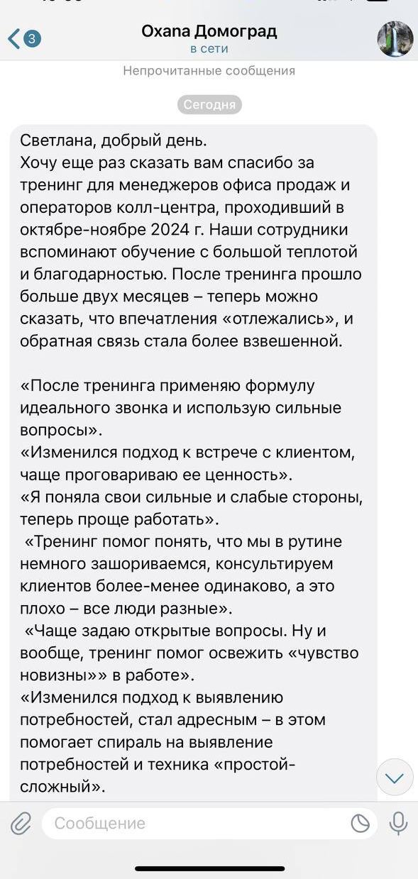 - Благодаря практике менеджеры выжали из тренинга максимум пользы и получил дополнительные навыки, которые были не включены в тренинг. Ведь на сопровождении совсем другая степень погружения и консалтера, и отдела продаж.